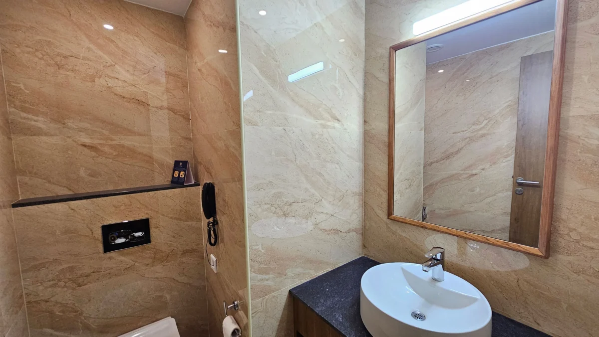 Relax in our spacious 205 ft² Deluxe Room, ideal for up to 2 adults and 2 children. The room features a luxurious King-sized bed and a 45 ft² modern bathroom. Enjoy the comfort of free WiFi and air conditioning, ensuring a convenient and pleasant stay. Please note that for families with children over 18, we recommend booking an additional room to ensure maximum comfort and privacy.